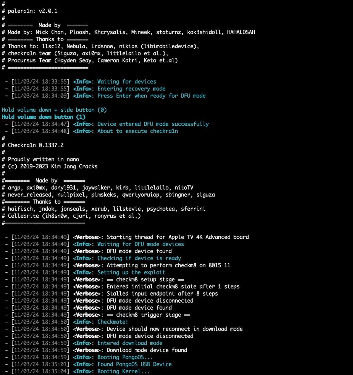 palera1n -c -f # más de 10 a 15 GB de espacio de almacenamiento libre